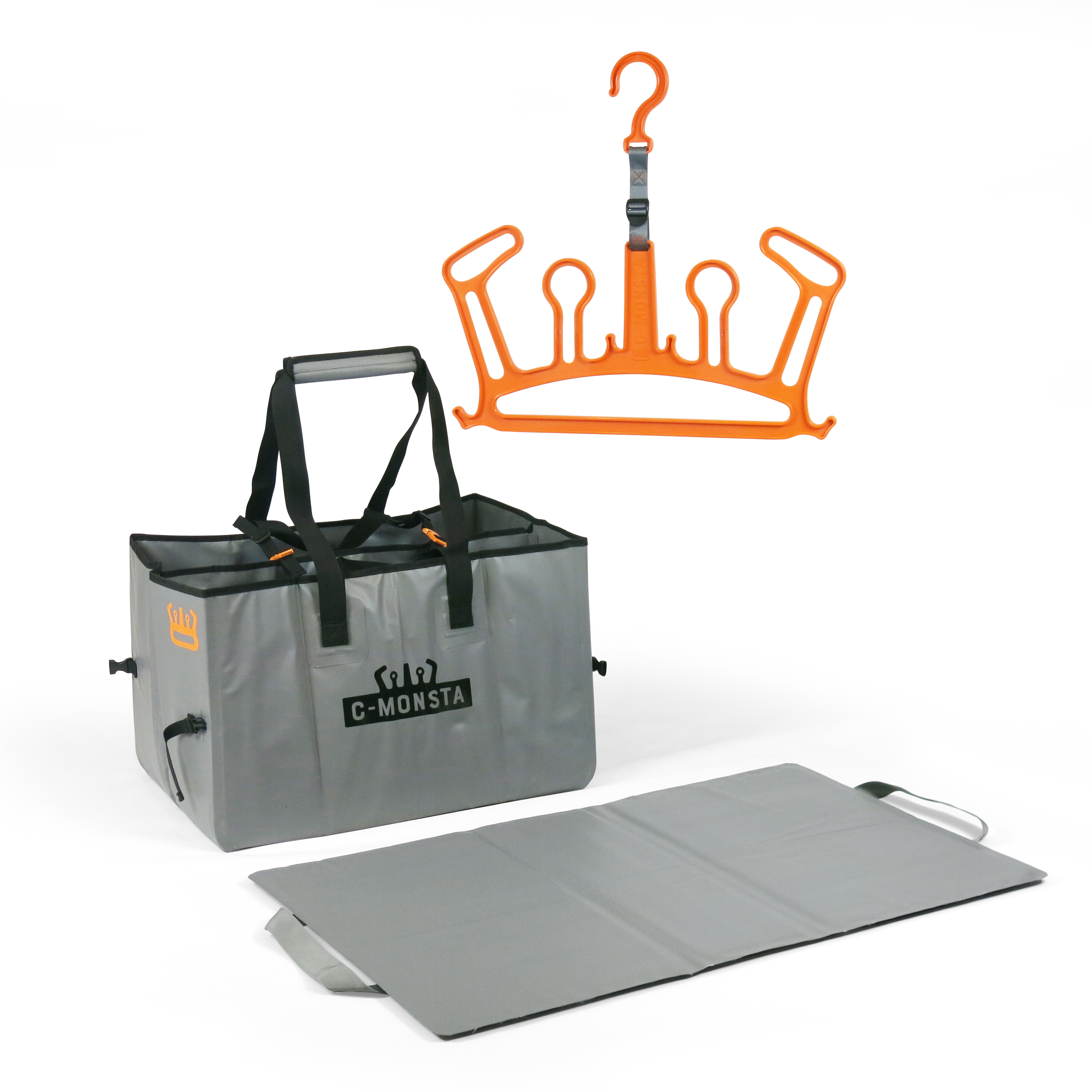 Keep your car from getting wet and filthy with this awesome bag. It's HUGE and will fit all your gear with separate dry and wet compartments. Already have the C-Monsta Hanger? It fits in the bag perfectly, even with all your stuff hanging on it!