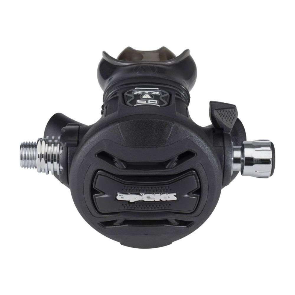 The XTX50 is for the discerning diver who wants the benefits of a feature-rich regulator at a moderate price. This popular regulator has four medium-pressure ports all mounted on a rotating turret, resulting in optimal hose routing while eliminating sharp bends in the hose.